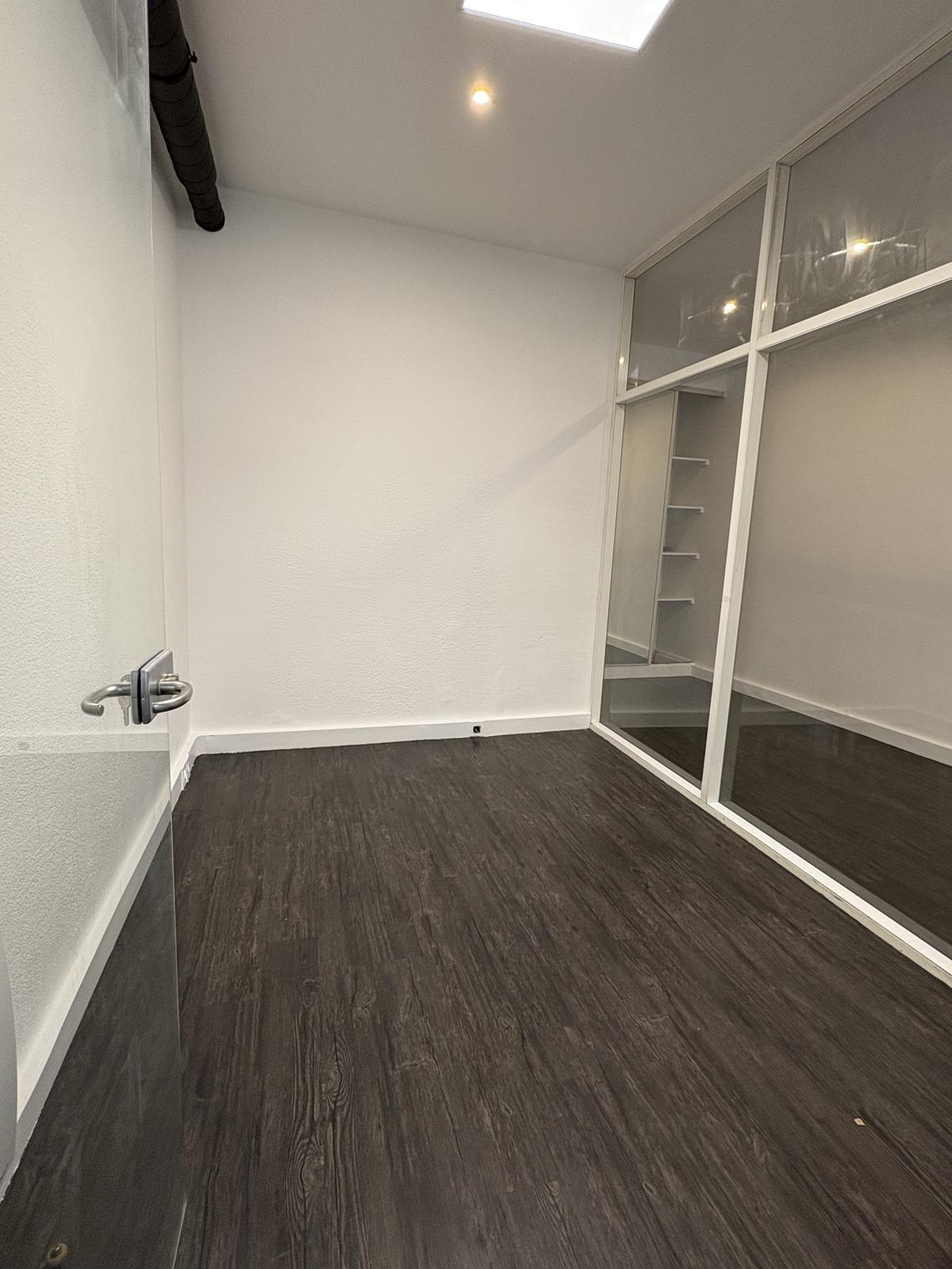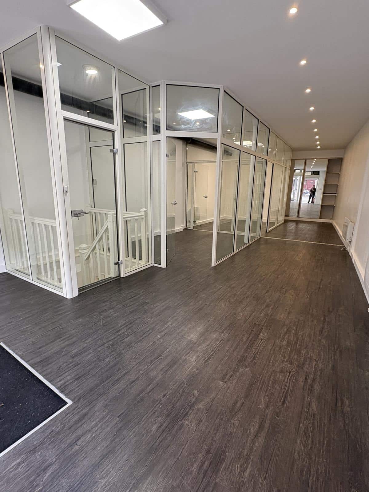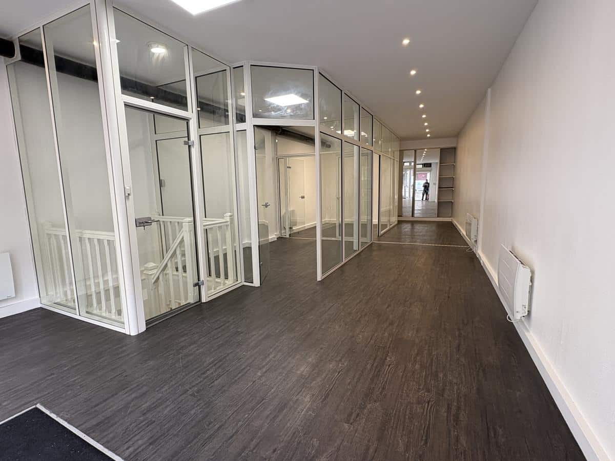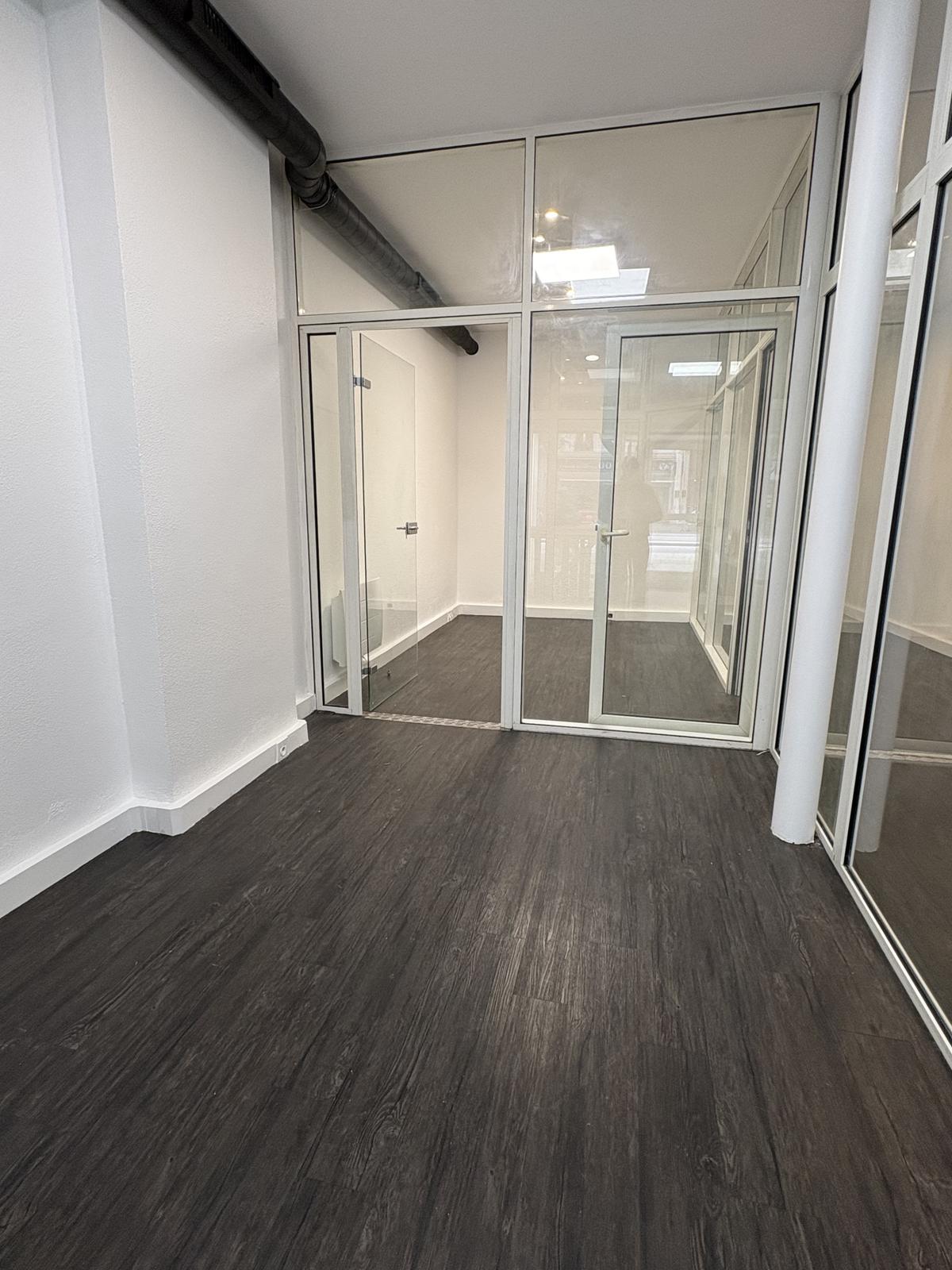 ON THE FIRST LEVEL: A 53m2 space with 2 glass-fronted offices, a wall cupboard and toilets.